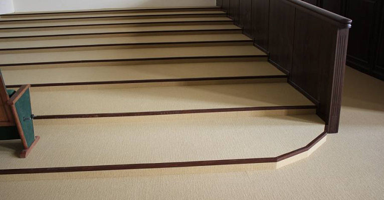 При выборе материалов наша команда учитывала все детали специфики помещения: регулярные контакты с воском, большая проходимость людей в уличной обуви, высокие температуры, возможные загрязнения от масляных пятен. Изучив все нюансы использования, наши эксперты предложили ковровую плитку Interface (Нидерланды). Это пожаробезопасный материал с искусственным ворсом, с которого легко удаляется большинство загрязнений, не нарушая внешний вид.