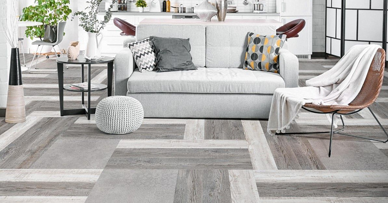 Пол с имитацией доски можно выгодно комбинировать, создавая уникальные узоры. Благодаря этому вы можете сделать необычный и универсальный пол, подходящий под любой интерьер.