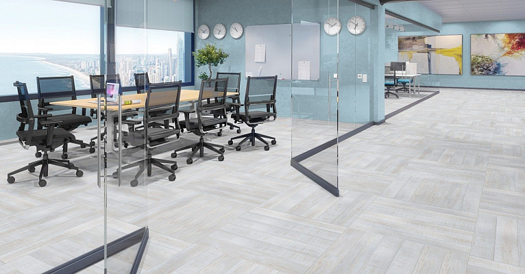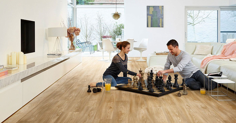 Кварцвинил – покрытие, совмещающее в себе лучшие стороны современных напольных материалов. Оно прочное, как ламинат, обладает модульностью, как у ковровой плитки, гибкостью и разнообразием текстур, как у линолеума. Материал практически полностью универсален, подходит для мокрой зоны, гостинной, столовой или кабинетов. А богатство расцветок и текстур позволяет совмещать этот пол с любым дизайном.