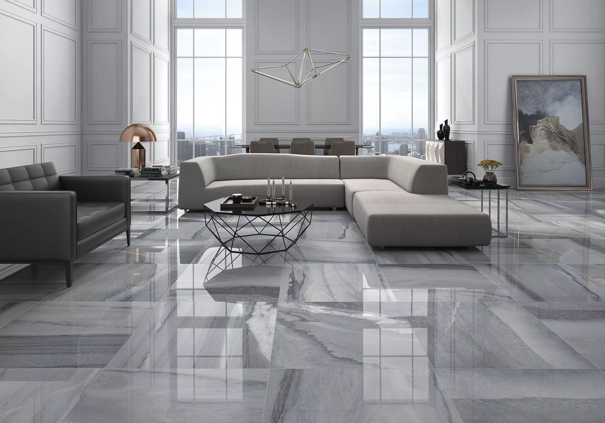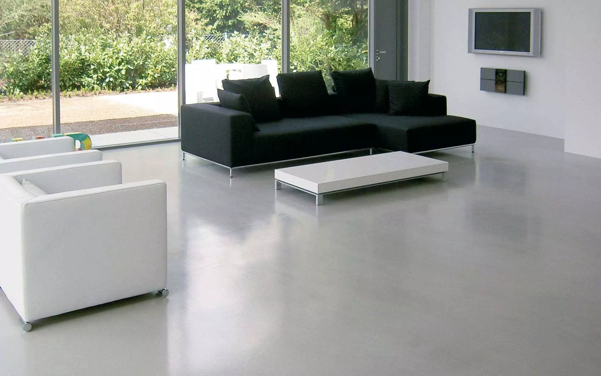 В офисах с низкой проходимостью глянцевый пол может стать эффектным дополнением интерьера. Это стильное, яркое и многогранное дополнение к минималистичным дизайнам. Кроме того, глянцевый пол сможет сдерживать вибрации.