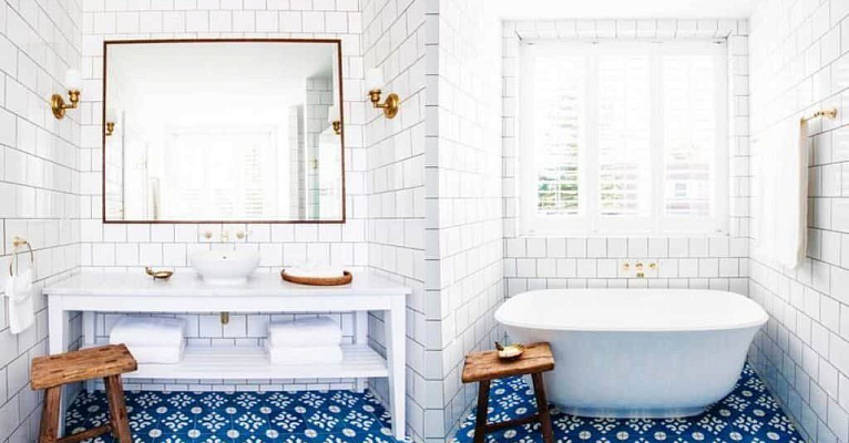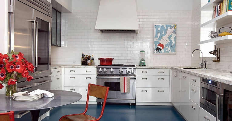 Второе стильное сочетание – голубой в классическом интерьере. Минимализм, небольшое количество декораций и цветов в дизайне можно эффектно разбавить, выдержав общую концепцию комнаты в голубом стиле. Для этих целей прекрасно подойдет, как однотонный голубой пол, так и покрытие с узорами разных оттенков. Голубой цвет в мебели, картинах, предметах декора, а также на полу и стенах – прекрасное решение для яркого и смелого интерьера.