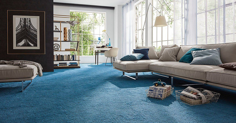 Чаще всего синий цвет используется в спальнях или офисах из-за своих успокаивающих свойств. В связи с этим ковролин в синем цвете смотрится наиболее эффектно. Сочетание визуального успокаивающего эффекта с приятными тактильными ощущениями от ворса сделает пребывание в помещении с голубым ковролином наиболее комфортным.