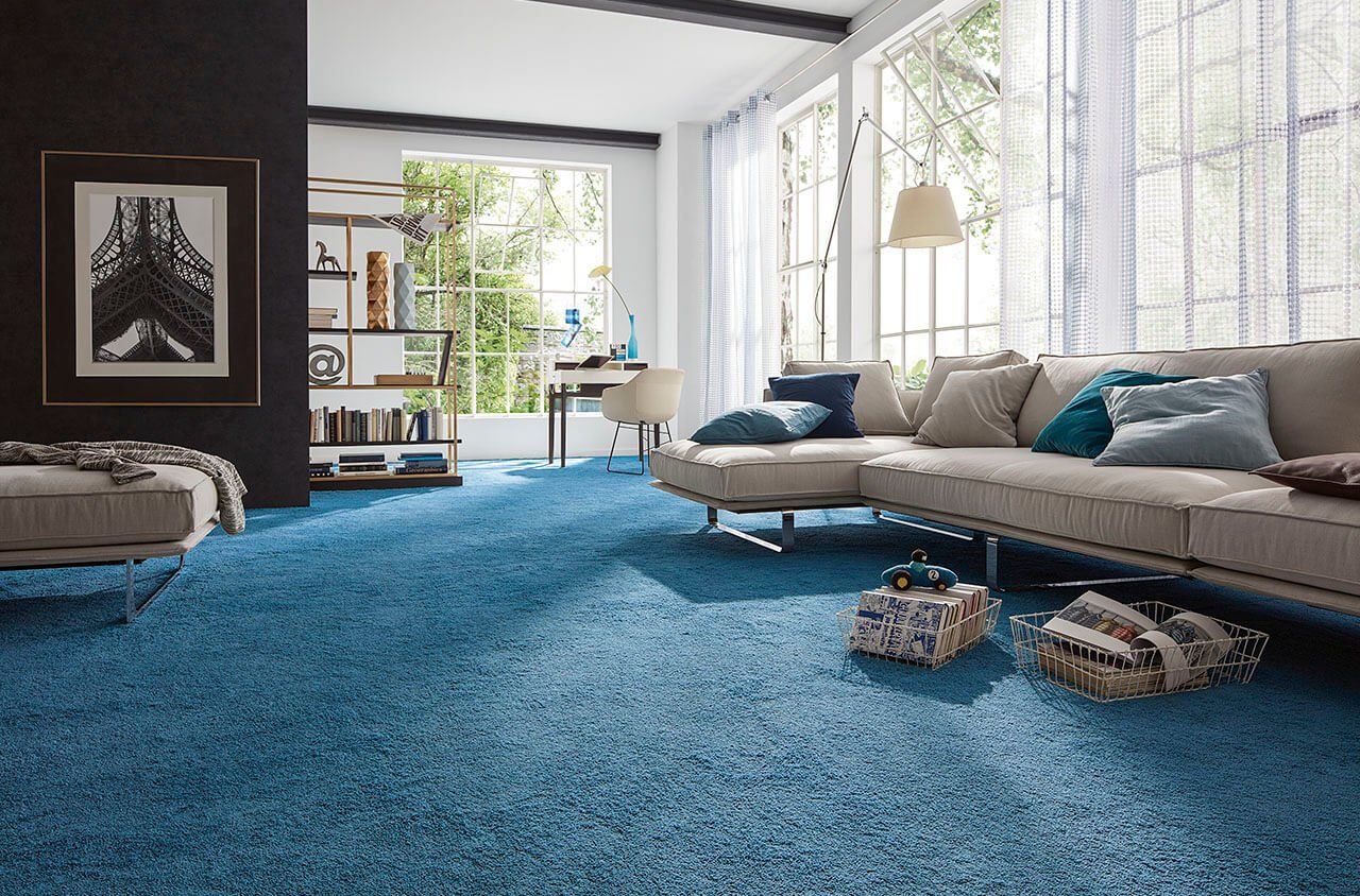 Чаще всего синий цвет используется в спальнях или офисах из-за своих успокаивающих свойств. В связи с этим ковролин в синем цвете смотрится наиболее эффектно. Сочетание визуального успокаивающего эффекта с приятными тактильными ощущениями от ворса сделает пребывание в помещении с голубым ковролином наиболее комфортным.