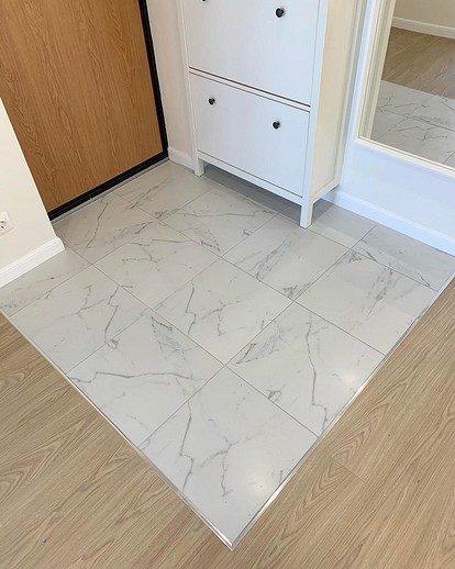 Скрытые стыки. Использование невидимых профилей, утопленных в слой клея, делает переход практически неразличимым.