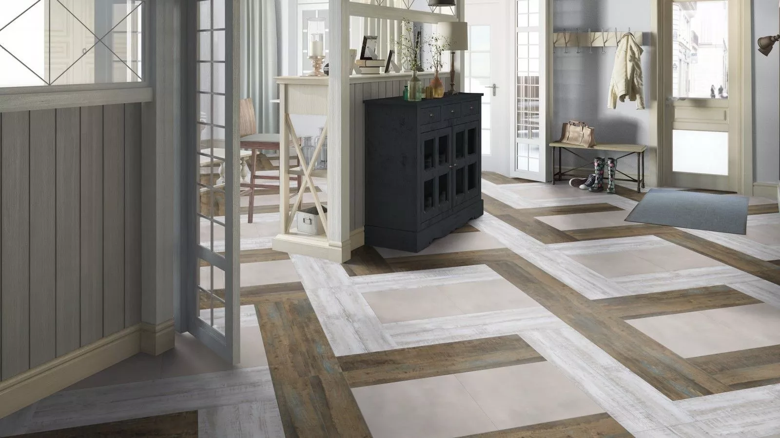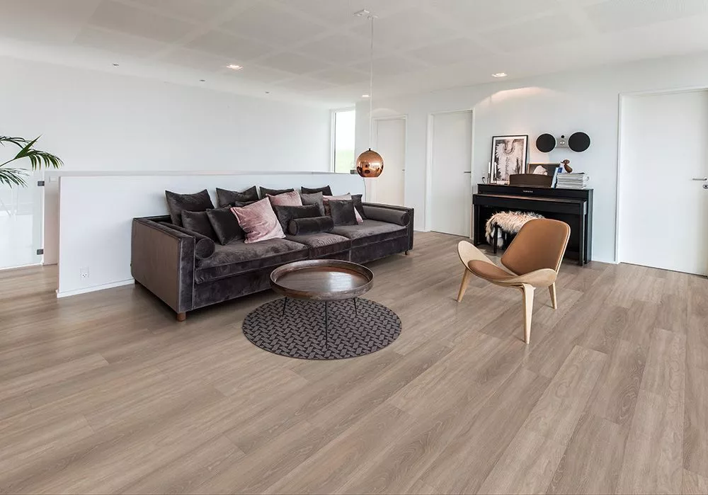 Кварц-винил для дома можно назвать долговечным вложением в качественный ремонт. Покрытие сочетает в себе свойства гибкого рулонного материала и прочность твердых покрытий. За счет проработанного современного состава кварц-винил практически полностью универсален, так как не боится влажности, высоких температур и других климатических воздействий. А поверхностный защитный слой обеспечивает дополнительную устойчивость к истиранию, царапинам и химическим воздействиям. Покрытие не выгорает на солнце, подходит для мест с высоким скоплением грязи и легко моется бытовыми средствами. Лаковый слой устойчив к воздействию щелочных и кислотных химикатов. Кроме того, материал обладает богатой цветовой палитрой, что позволяет вам самостоятельно подобрать модель под желаемый или уже имеющийся дизайн. Современный кварц-винил легко интегрировать в любой интерьер, включая шегги, прованс или винтаж, предполагающие элементы состаренности.