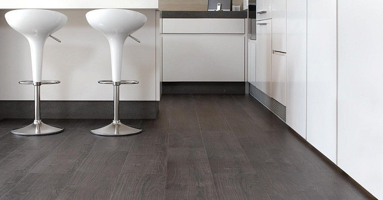 Кварц-винил – долговечный и крепкий пол, которому нипочем вода и высокая проходимость. Он хорошо сохраняет тепло и не пропускает посторонние шумы, однако довольно скользкий, подвержен выцветанию и требует тщательной подготовки помещения перед укладкой. К тому же, стоит на порядок дороже ламината.