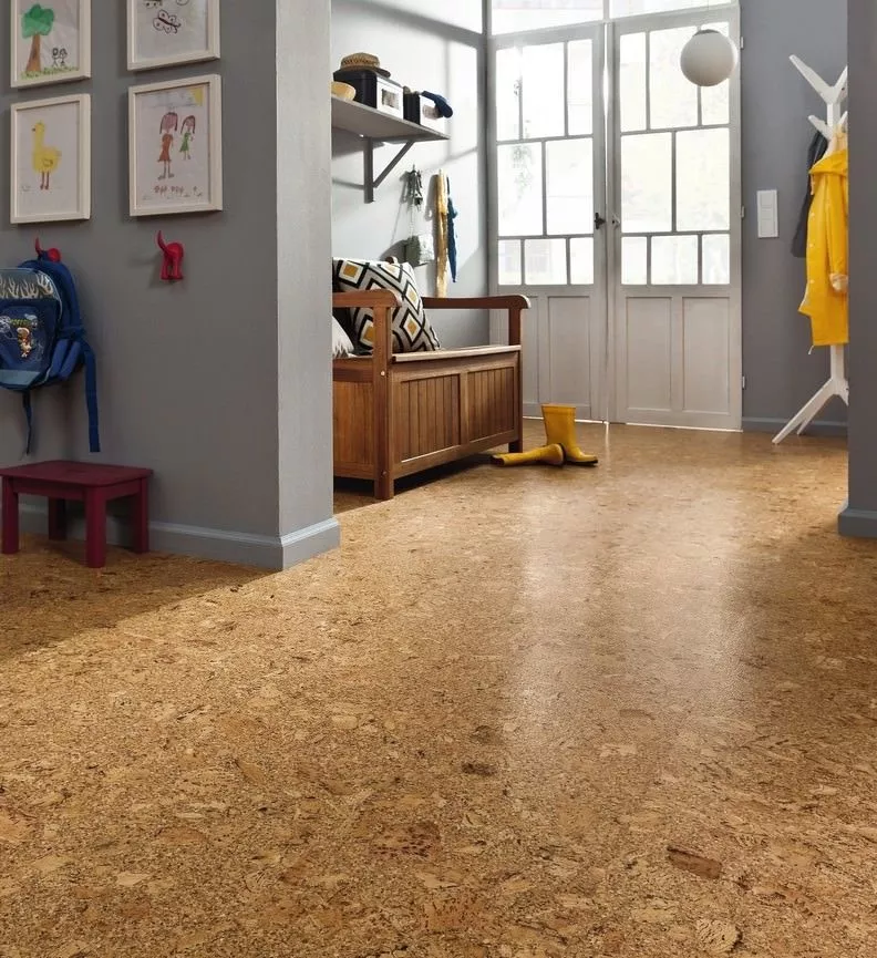 Так называют отделочный напольный материал, изготавливающийся из коры пробкового дуба. Это натуральное однослойное покрытие, обладающее свойствами экологичности и безопасности. Материал не имеет в составе клея, химически активных элементов или формальдегидов искусственных смол. Целостность и прочность покрытие получает за счет природных связующих компонентов, выделяющихся при дроблении.