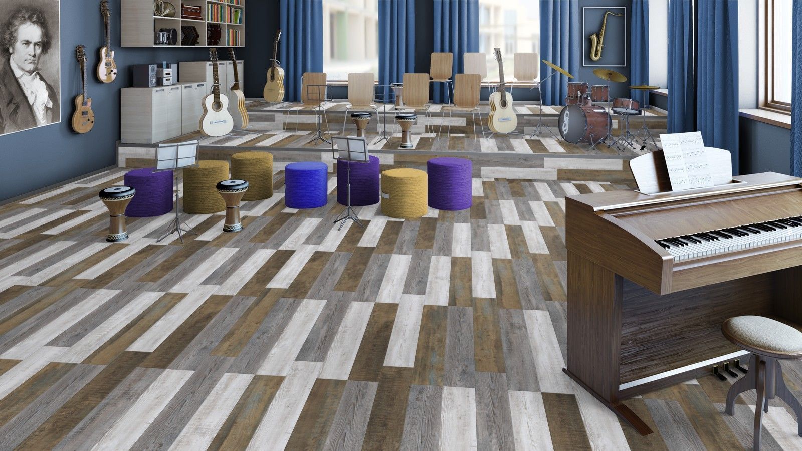 Использование винила на минеральной подложке гарантирует качественный ремонт, не только с практической, но и эстетической точки зрения. Покрытие отличается небольшой толщиной и 100% примыканием. Это позволяет покрывать помещения площадью до 200 м² без деформационных швов.