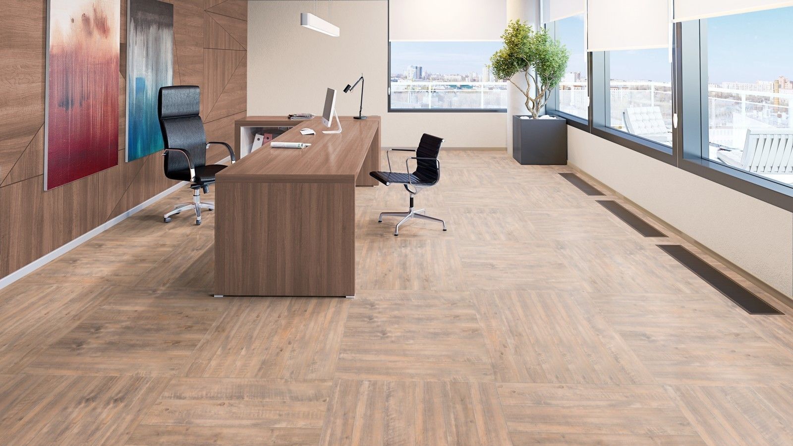 Ламинированные покрытия активно используются для отделки офисов, государственных учреждений, частных кабинетов, а также выставочных залов, торговых площадок и прочих мест с повышенной эксплуатационной нагрузкой. Коммерческий влаго- или водостойкий ламинат может использоваться практически в любых внешних условиях, этот напольный материал долговечен и практичен.