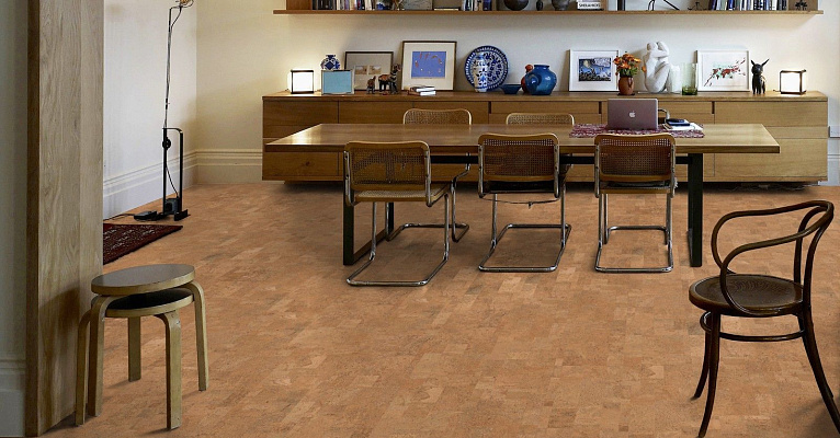 Цвет часто используют в офисных и торговый помещениях. Пыльная пробка отлично гармонирует с любым интерьером и декором, она выглядит эффектно и практически универсально. Помещение с таким полом всегда выглядит стильно и необычно.