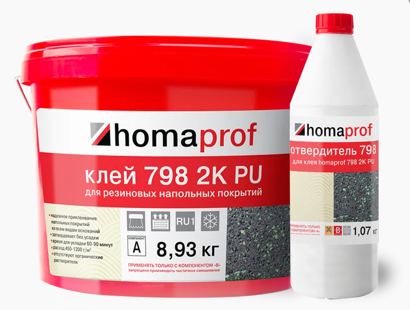 Homaprof 798 2K PU (8,93 кг + 1,07 кг) Двухкомпонентный полиуретановый клей для резиновых напольных покрытий