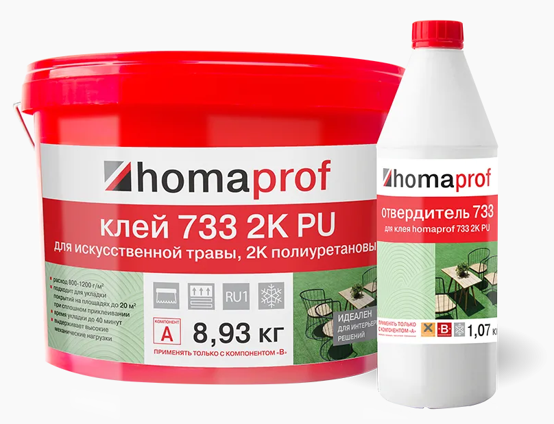 Homaprof 733 2K PU (8,93 кг + 1,07 кг) Клей для искусственной травы, полиуретановый