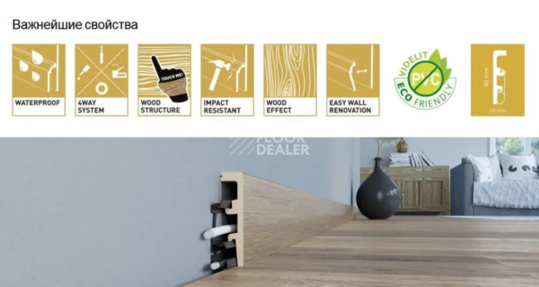Плинтус Дюрополимерный Arbiton Integra 80мм Плинтус дюрополимерный Arbiton Integra Дуб Натурал HDPS 19