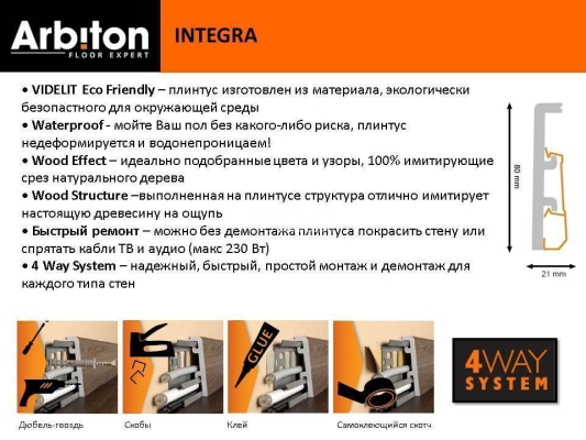 Параметры Плинтус Дюрополимерный Arbiton Integra 80мм