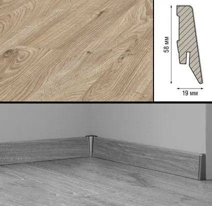 D3075 Плинтус ламинированный МДФ Kronotex Дуб Рип D3075/ Дуб Рифт D3044