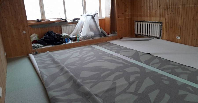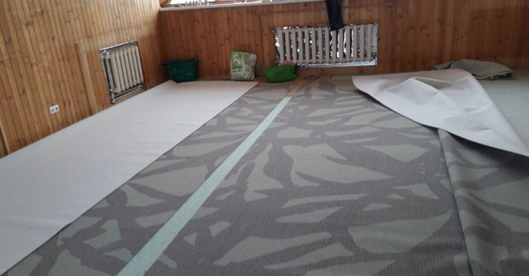 После утверждения модели, состоялся выезд замерщика. При проведении расчетов и монтажа важно было учесть сложную форму помещения. Нашей команде удалось провести укладку покрытия, избежав стыков.