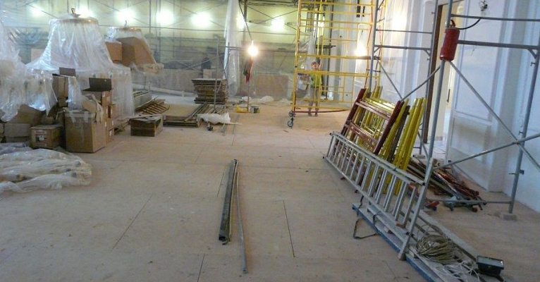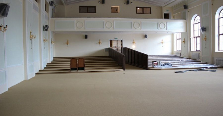 При выборе материалов наша команда учитывала все детали специфики помещения: регулярные контакты с воском, большая проходимость людей в уличной обуви, высокие температуры, возможные загрязнения от масляных пятен. Изучив все нюансы использования, наши эксперты предложили ковровую плитку Interface (Нидерланды). Это пожаробезопасный материал с искусственным ворсом, с которого легко удаляется большинство загрязнений, не нарушая внешний вид.