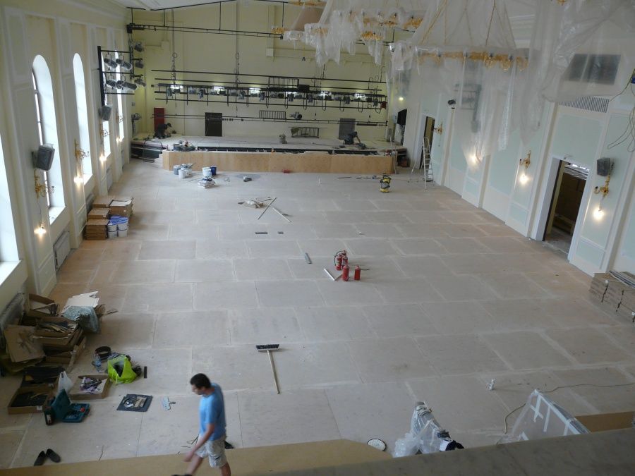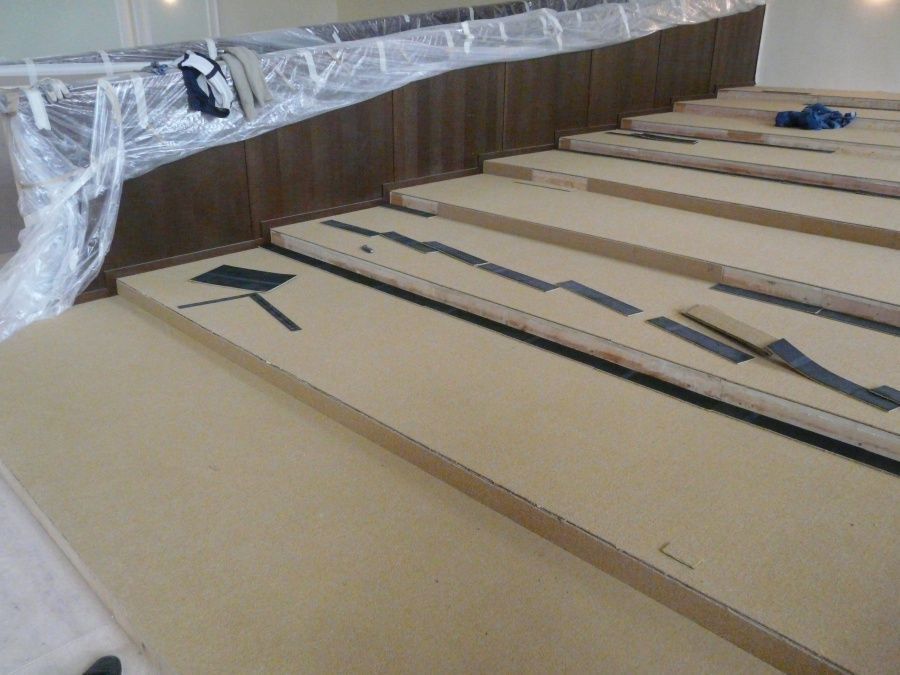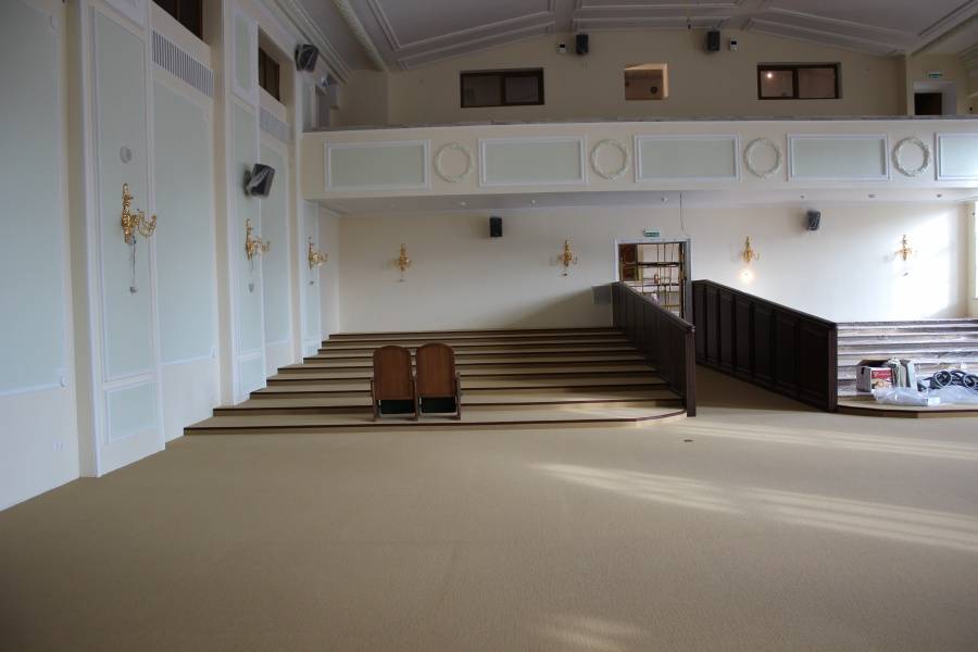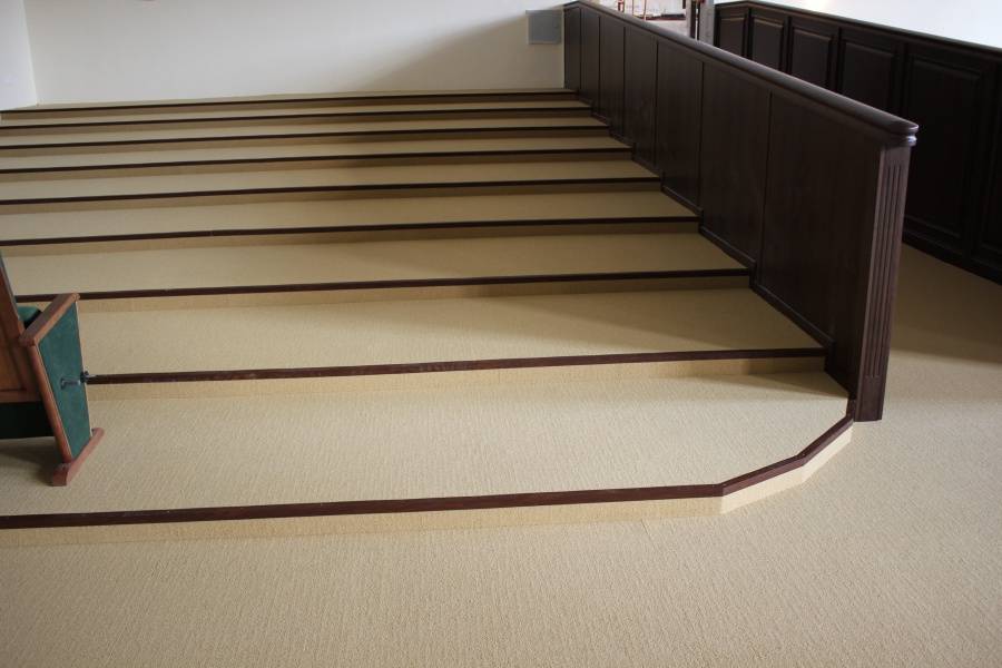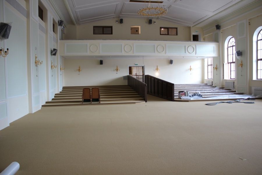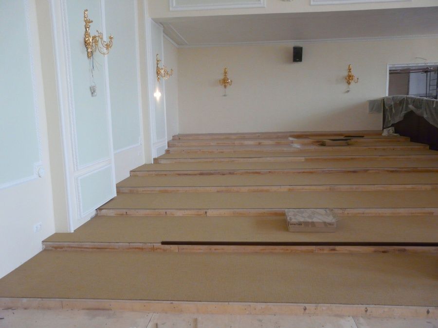 При выборе материалов наша команда учитывала все детали специфики помещения: регулярные контакты с воском, большая проходимость людей в уличной обуви, высокие температуры, возможные загрязнения от масляных пятен. Изучив все нюансы использования, наши эксперты предложили ковровую плитку Interface (Нидерланды). Это пожаробезопасный материал с искусственным ворсом, с которого легко удаляется большинство загрязнений, не нарушая внешний вид.