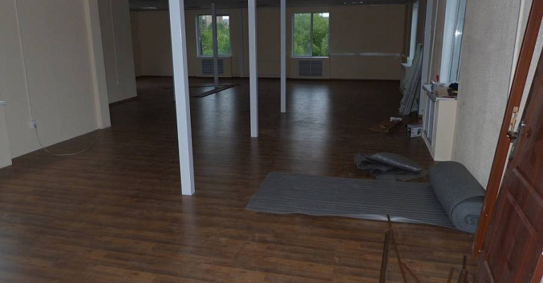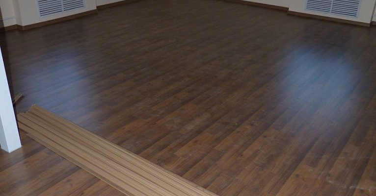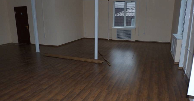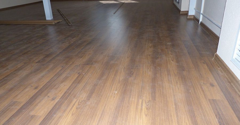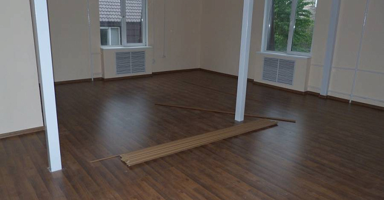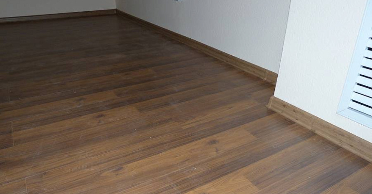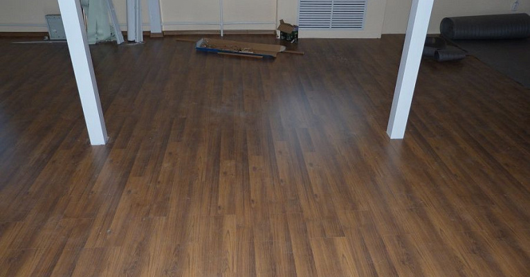 Классическая модель немецкого ламината прекрасно подошла к минималистичному интерьеру помещения. В последующем, владельцы смогут дополнять дизайн разнообразным декором и мебелью.