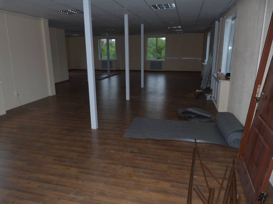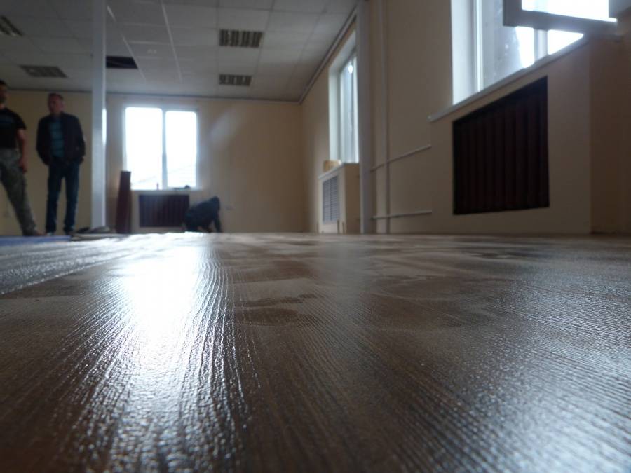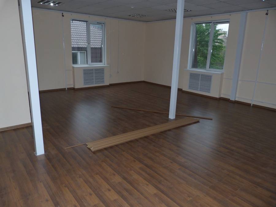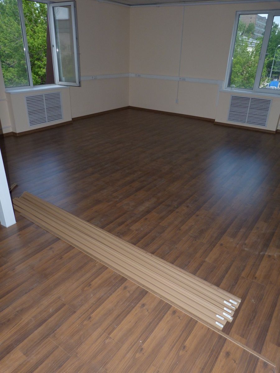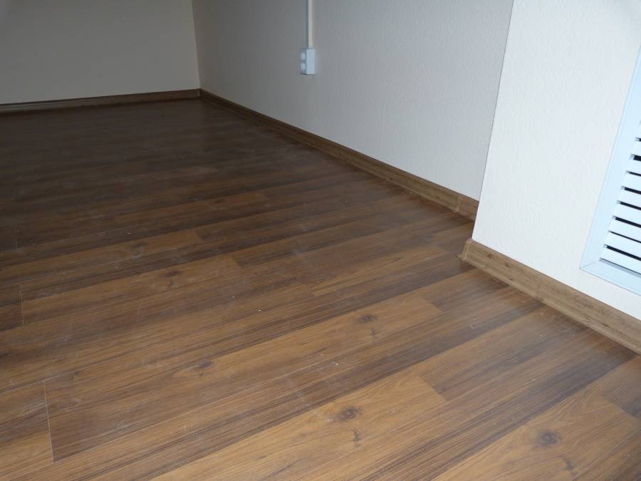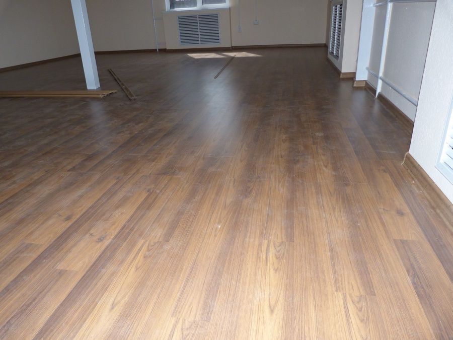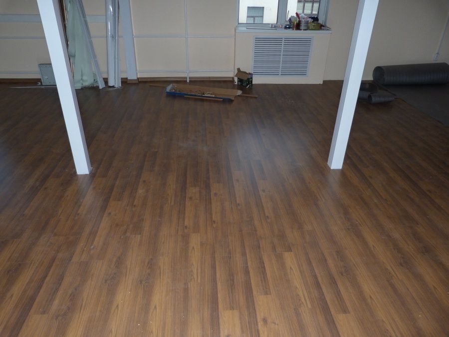 Классическая модель немецкого ламината прекрасно подошла к минималистичному интерьеру помещения. В последующем, владельцы смогут дополнять дизайн разнообразным декором и мебелью.