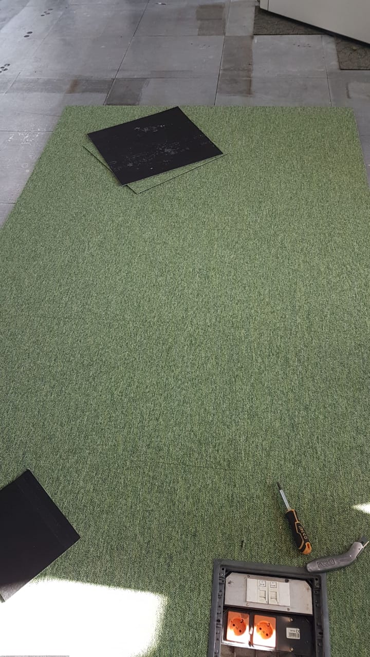При разработке этого дизайн-проекта, основным требованием заказчика было обыграть фирменный зеленый цвет компании в интерьере. Наши дизайнеры решили остановить свой выбор на эффектной модели ковровой плитки Escom Object насыщенного салатового цвета.