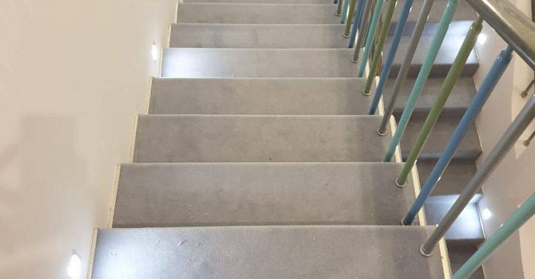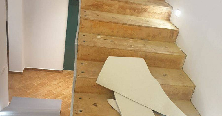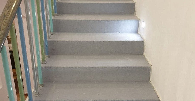Укладка шерстяного ковролина Balsan majestic на лестницу