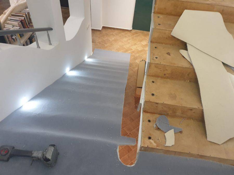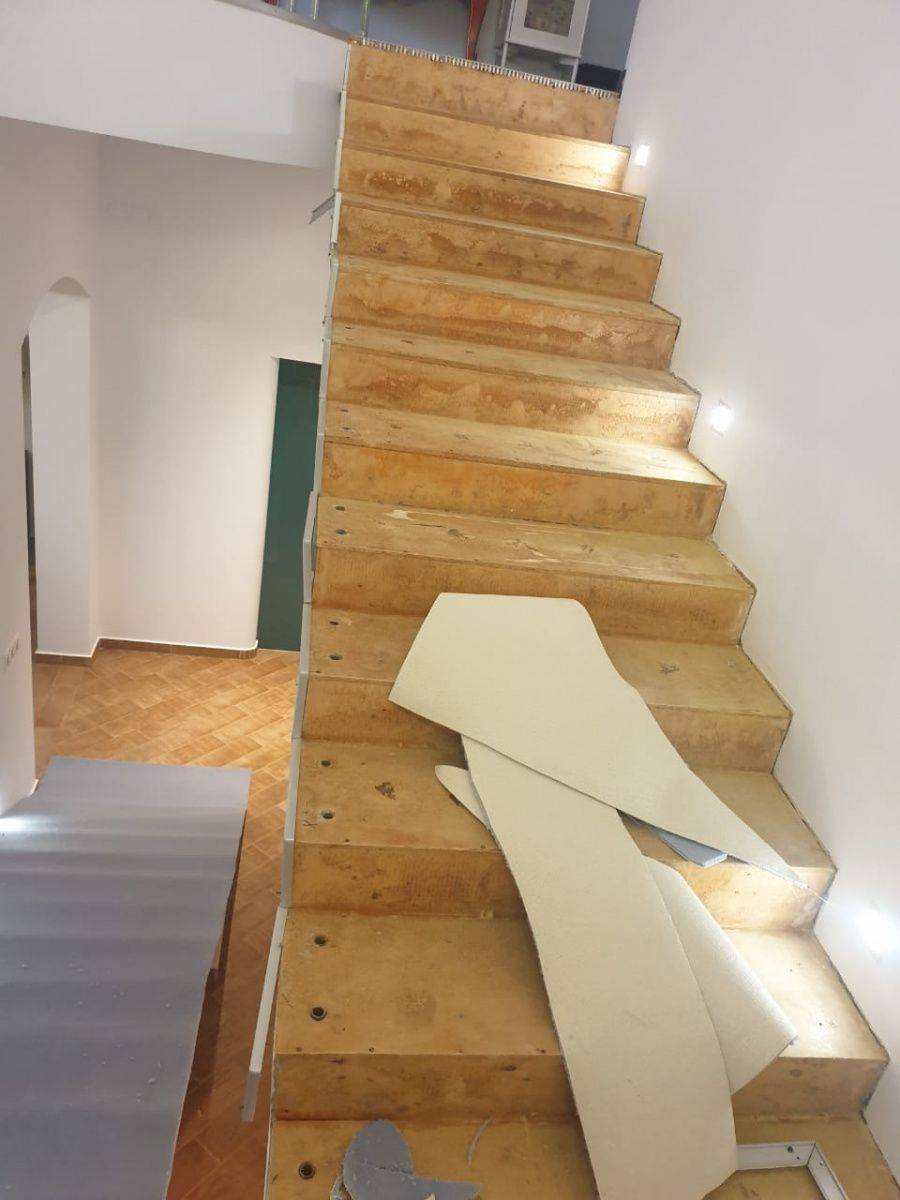 Укладка шерстяного ковролина Balsan majestic на лестницу
